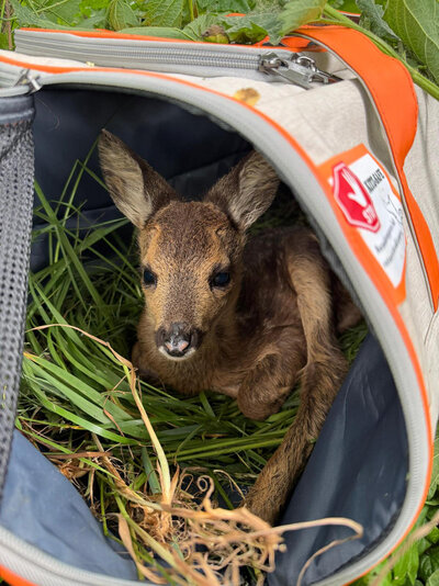 Jährlich fallen in Niedersachsen zahlreiche Rehkitze der Mahd zum Opfer. Umso wichtiger ist die Arbeit der vielen ehrenamtlichen Kitzrettungsteams, die sich in den vergangenen Jahren vielerorts auf Initiative von Jägerschaften, Hegeringen und engagierten Landwirten gebildet haben. Diese wichtige Arbeit hat die VGH Versicherungen nun mit einem Pilotprojekt unterstützt. Landesweit erhielten 43 VGH-Agenturen jeweils fünf Kitzrettungstaschen, die an örtliche Kitzrettungsteams übergeben wurden. Die speziell entwickelten Taschen sind atmungsaktiv und bieten den Jungtieren während der Mahd einen geschützten und stressarmen Aufenthaltsort am Feldrand. Gleichzeitig helfen sie dabei, den direkten Kontakt mit menschlichem Geruch möglichst gering zu halten – eine wichtige Voraussetzung dafür, dass die Kitze nach der Mahd wieder problemlos von der Ricke angenommen werden.